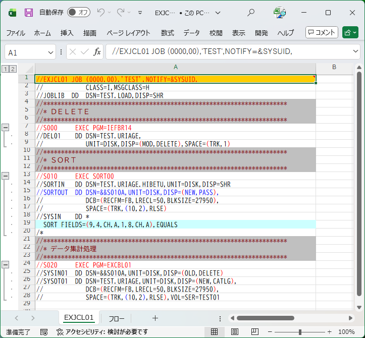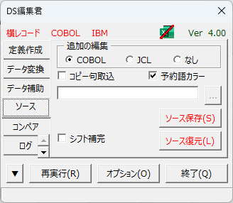 COBOL、PL/I、JCLのソースの場合、追加の編集が可能です。
