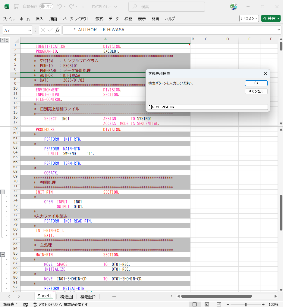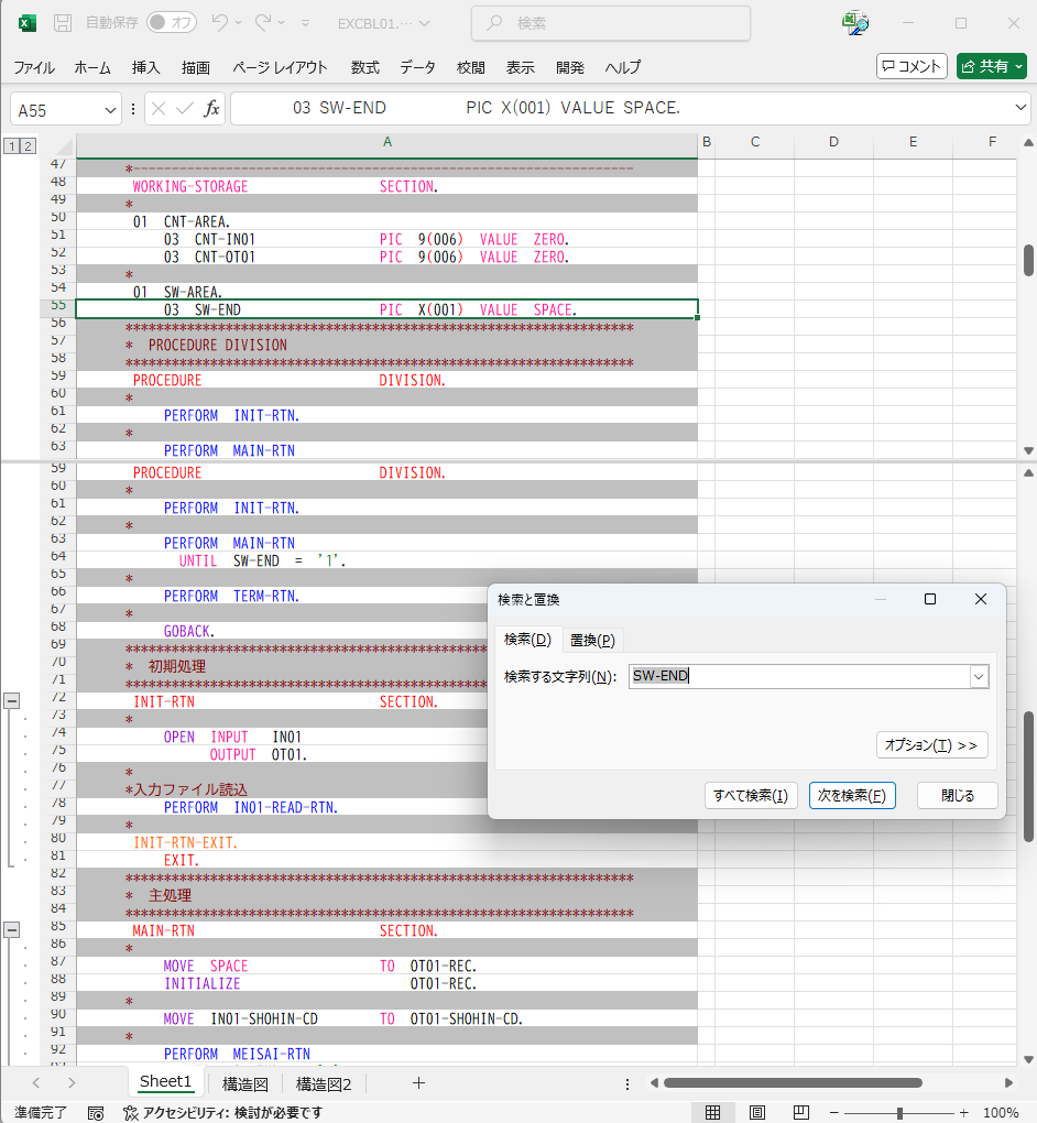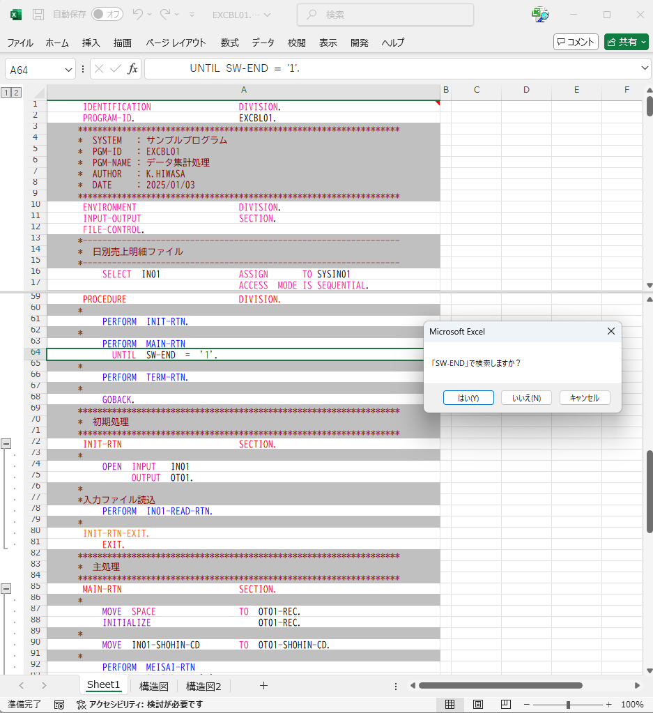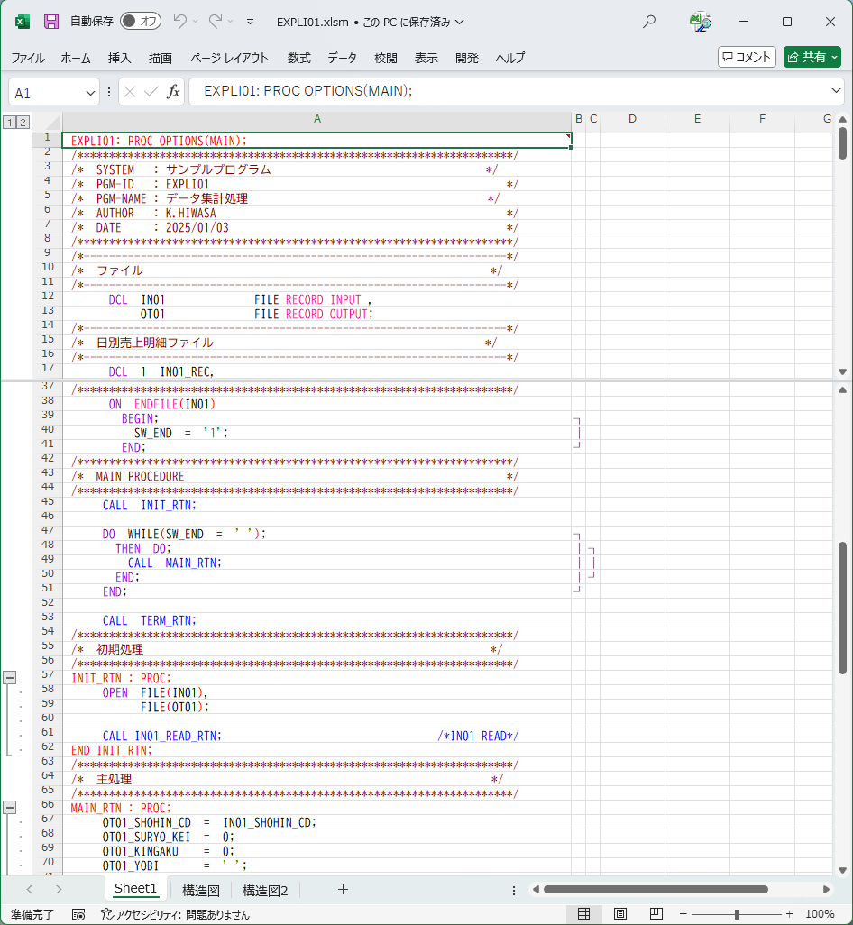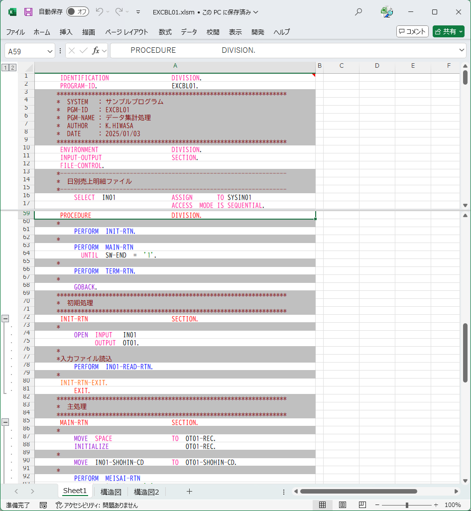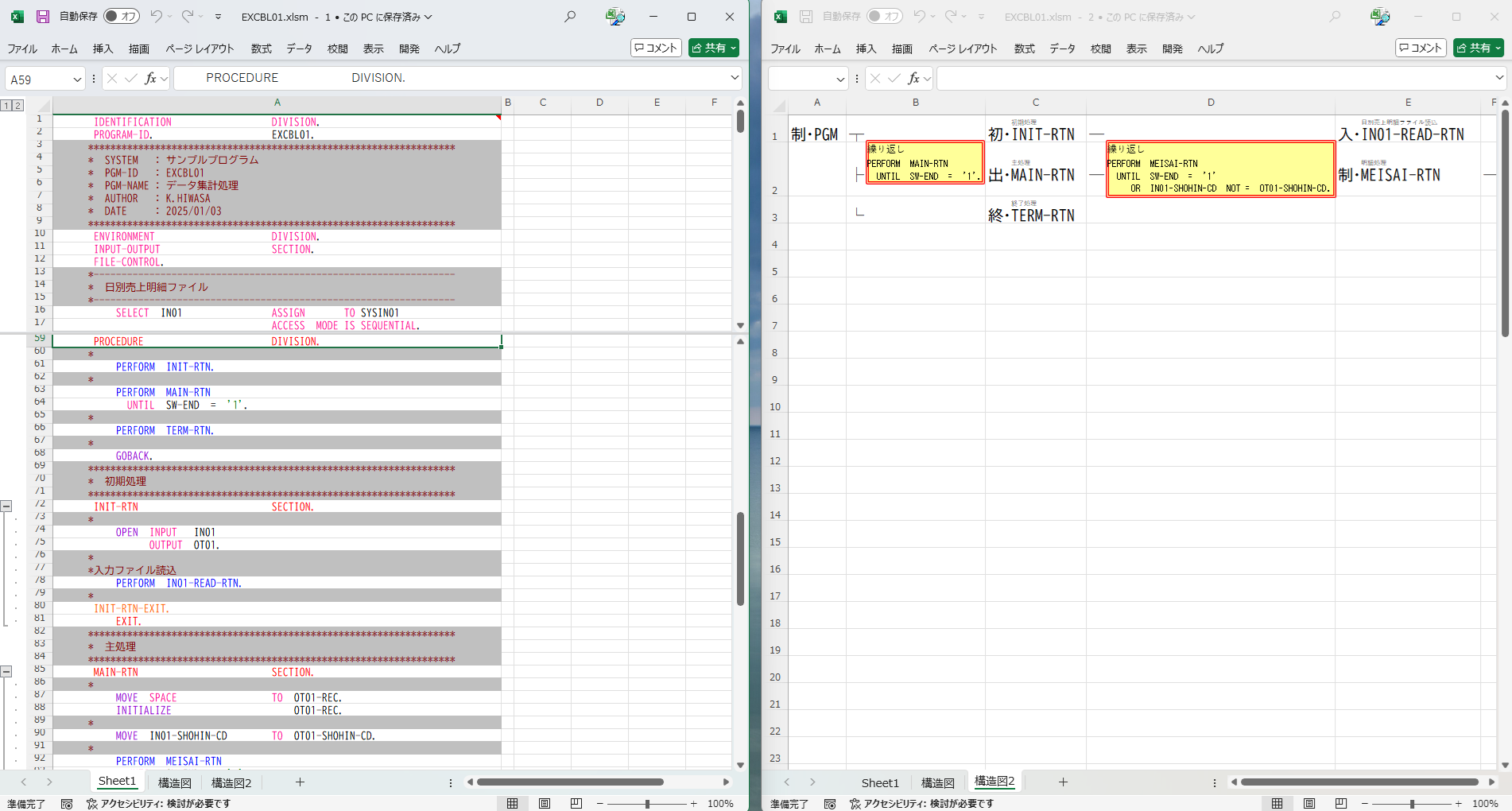 ファイルを開くときにマクロを有効にすると、ソースと構造図2を左右に並べて表示します。