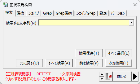 正規表現による検索・置換ダイアログを表示するExcelアドインです。