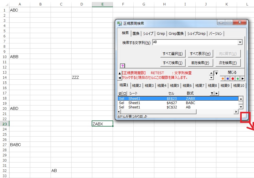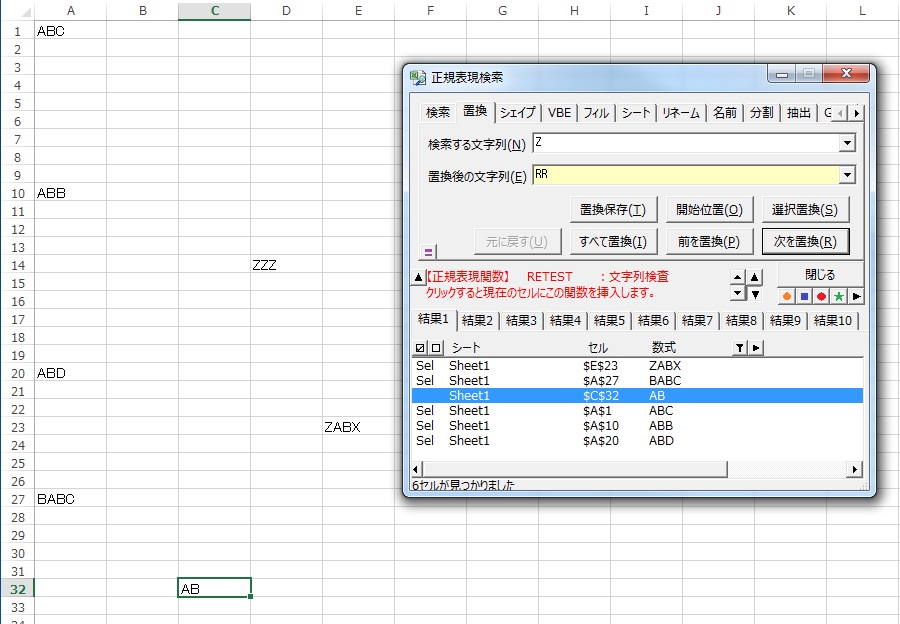 なお検索する文字列にABを入力する必要はありません。