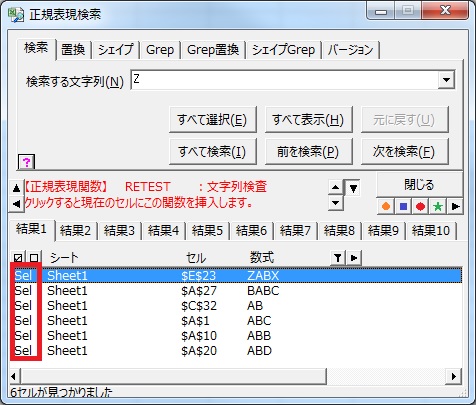 検索結果一覧の左端のSelという列が選択表示で、
