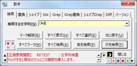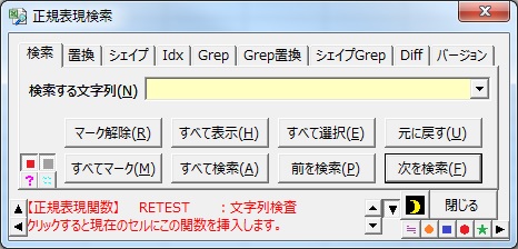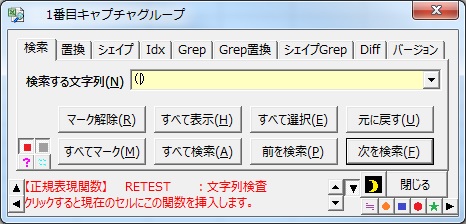 また、入力済の検索する文字列の該当部分にキーボードやマウスでカーソルを移動させると、 その部分の正規表現の説明をタイトルバーに表示します。