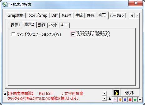 この機能をオフにするには、設定タブの表示2タブの「入力説明非表示」をオンにします。