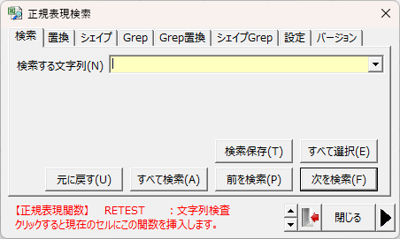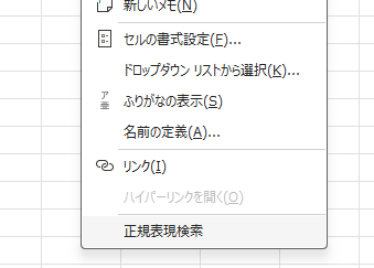 または、右クリックメニューの「正規表現検索」からもダイアログを呼び出せます。