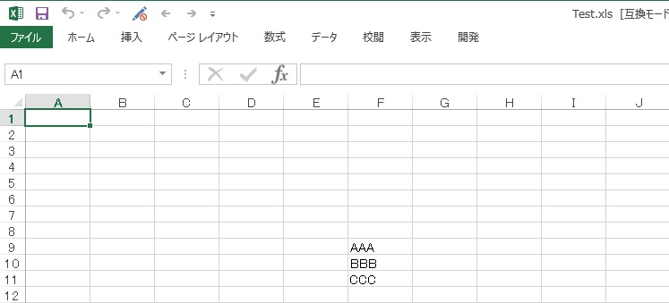 例えば以下の保存済ファイルTest.xlsを開きました。