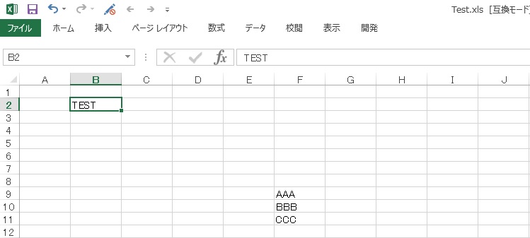 B2にTESTと入力する前のバージョンです。