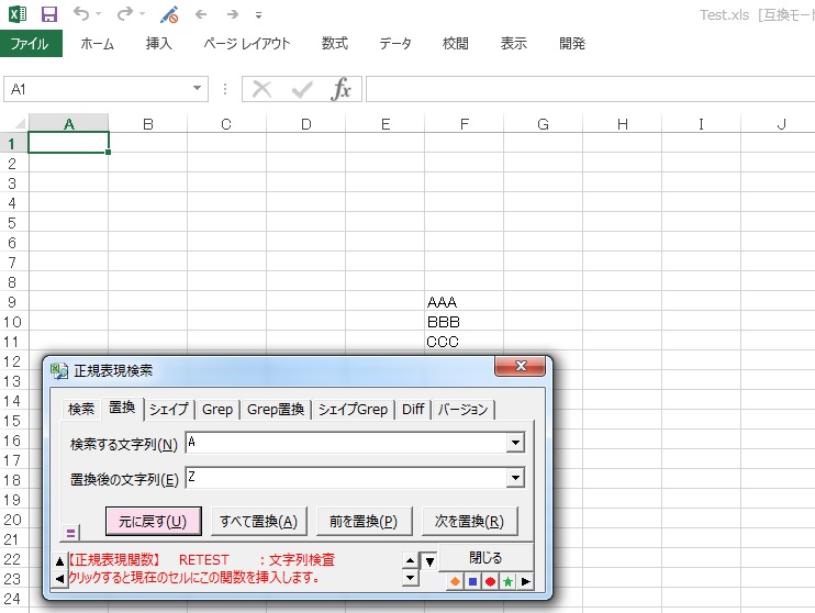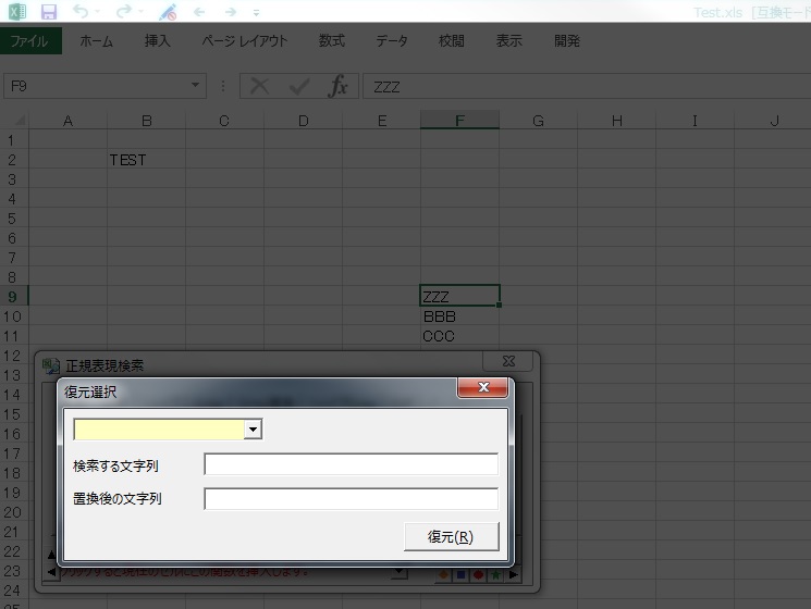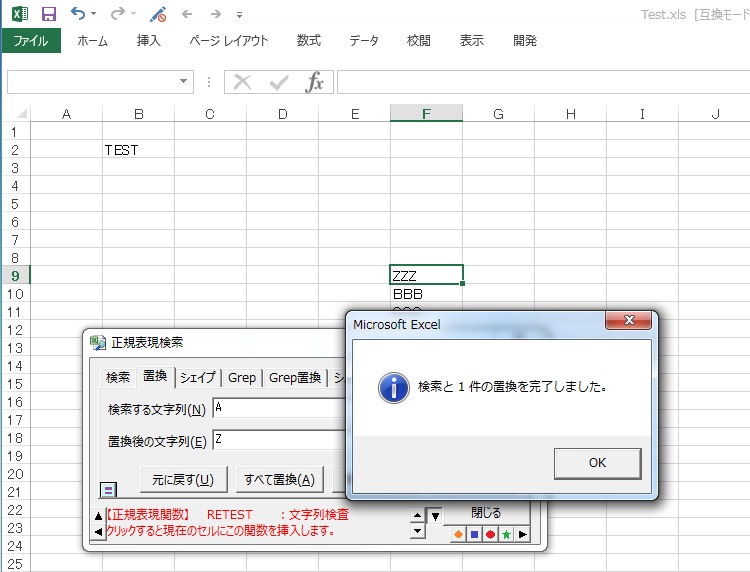 つまり、F9セルがZZZの置換後のファイルです。