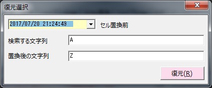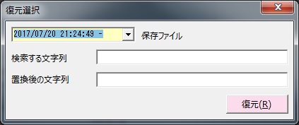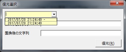 ここで元に戻すボタンを押すと、復元選択ウィンドウが表示されます。