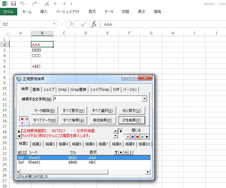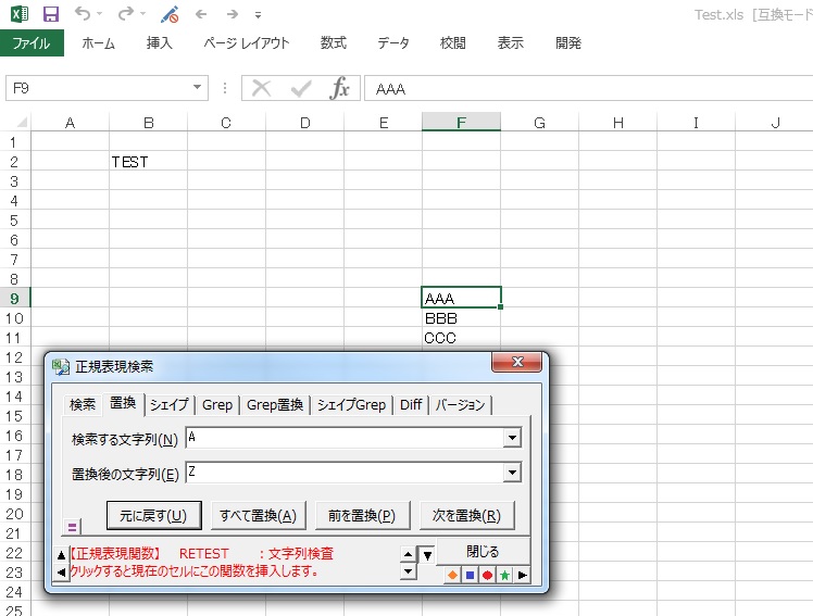 B2にTESTと入力した後のバージョンです。