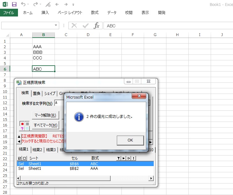 現在のブックに対してバックアップファイルがある場合に復元選択ウィンドウが表示されます。