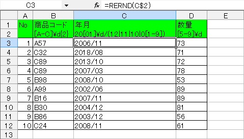 それぞれの項目にRERND関数を使います。