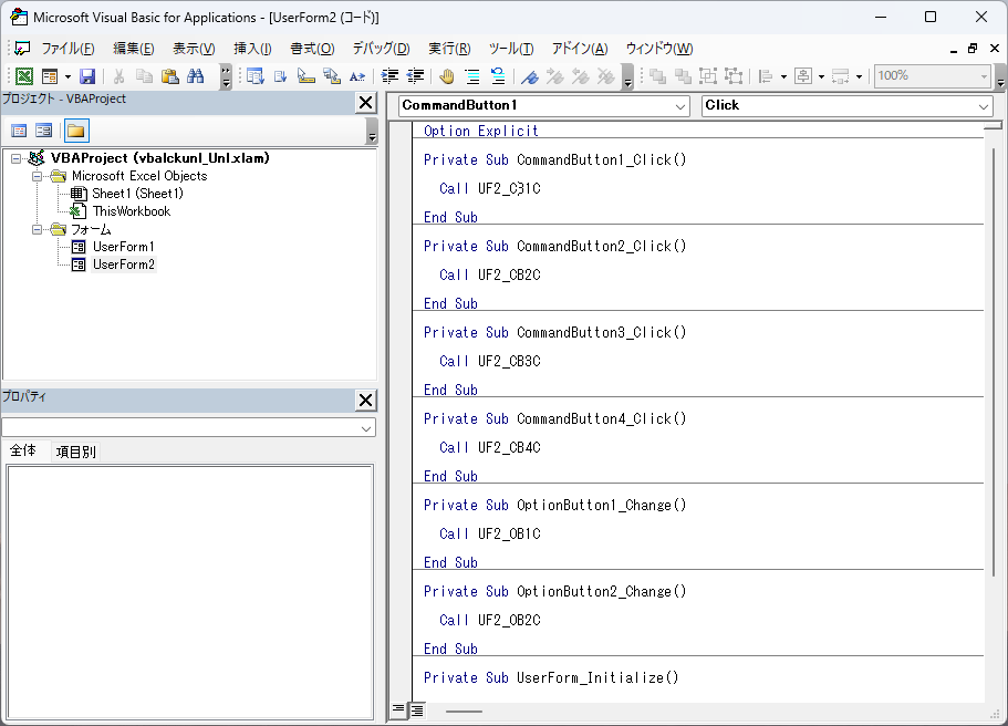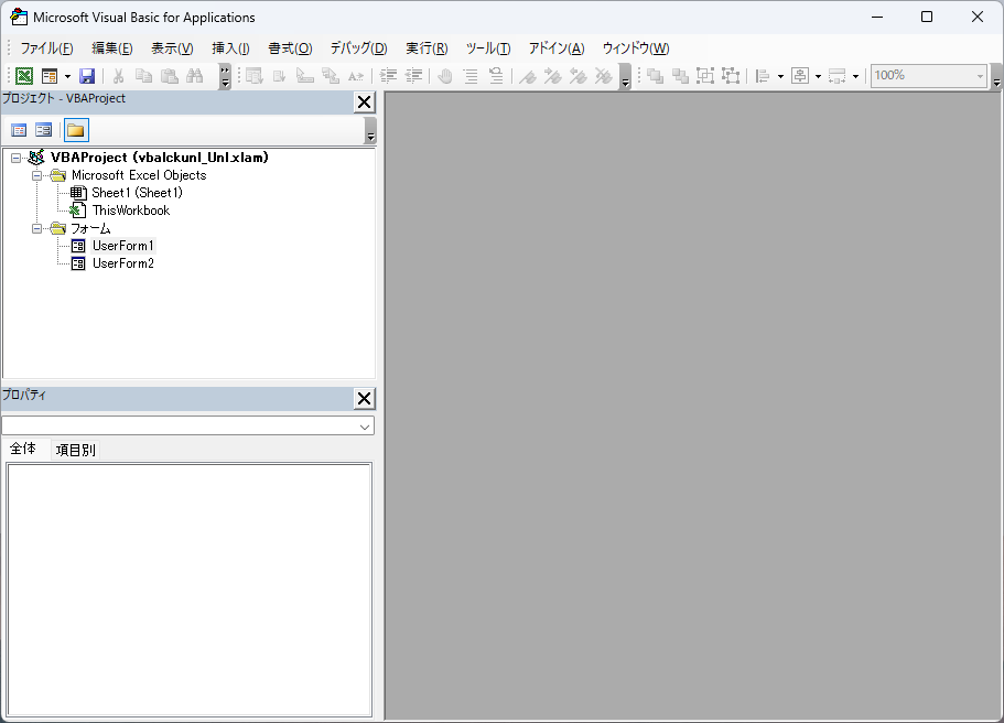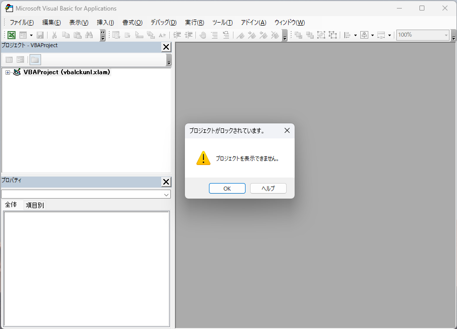 VBAプロジェクトのロックが解除されて、中身が見れるようになりました。