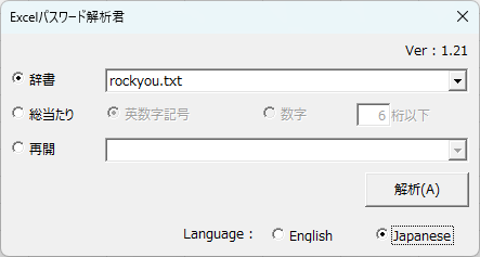 Excelパスワード解析君1.21(2024/01/21更新)