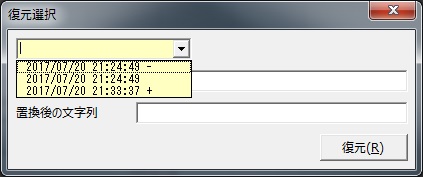 ここで元に戻すボタンを押すと、復元選択ウィンドウが表示されます。