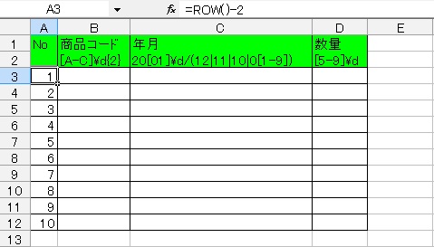 商品コード(A〜Cのアルファベット1文字+数字2桁)